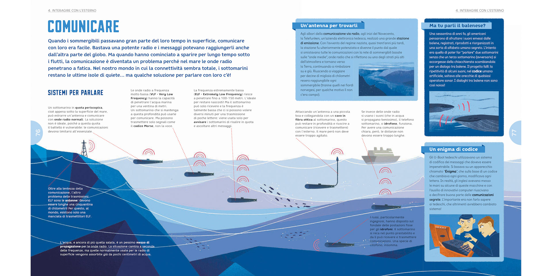 Il Grande libro dei Sottomarini is an illustrated book about submarines. In this book you can find everything you can imagine about submarines! Published by Editoriale Scienza