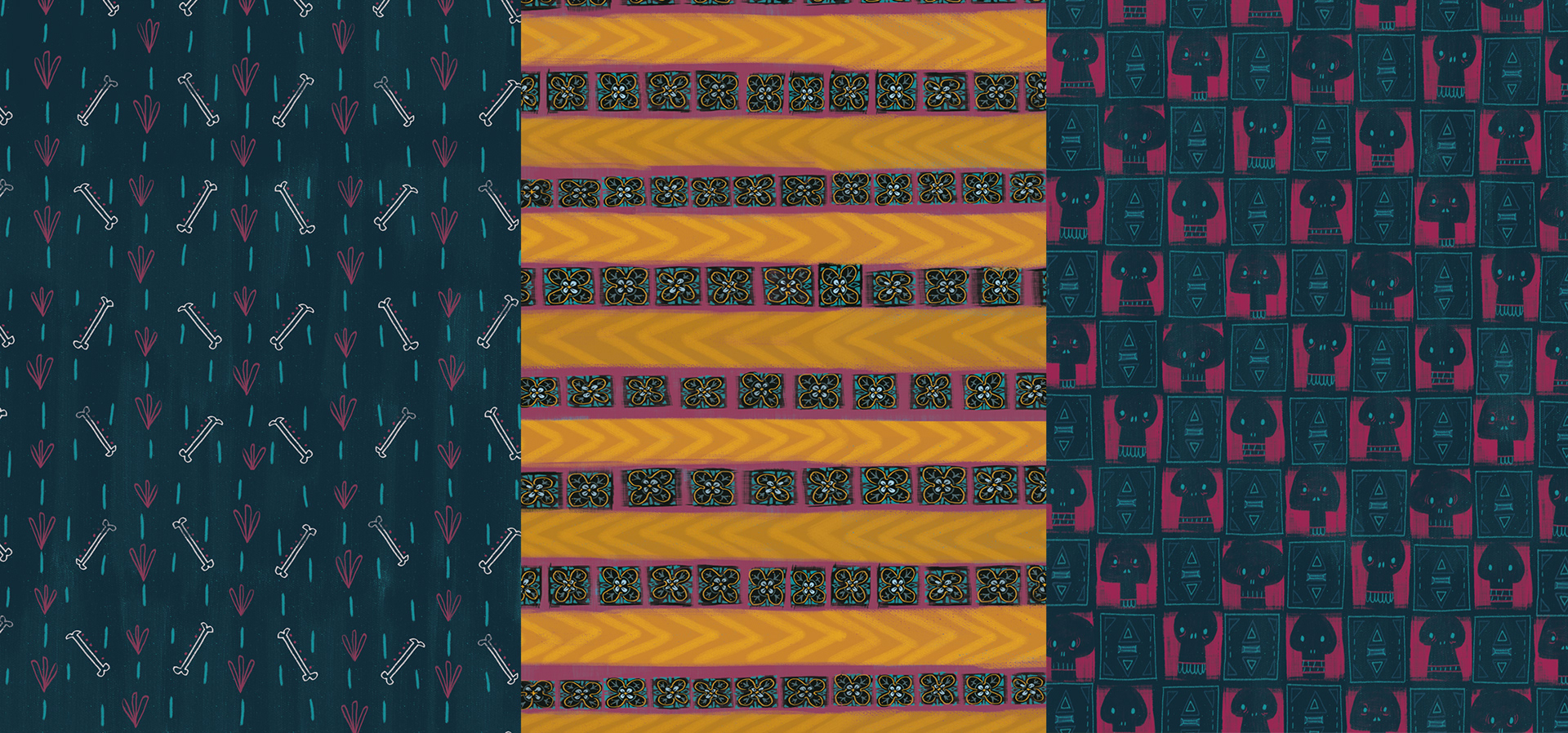 I chose to represent dancing skeletons, inspired by the Mexican day of celebration of the deads, el dia de los muertos